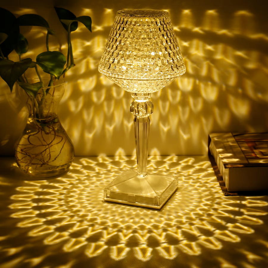 💫【Exquisite appearance】: crystal table lamp is made of high-quality acrylic crystal materials, The appearance is finely polished and the cut surface is shaped like a lampshade diamond. The exquisite pattern mapped on the floor after turning on the light is our unique design.crystal decoration design looks elegant on the table or bedside table,Romantic atmosphere for your entire room.