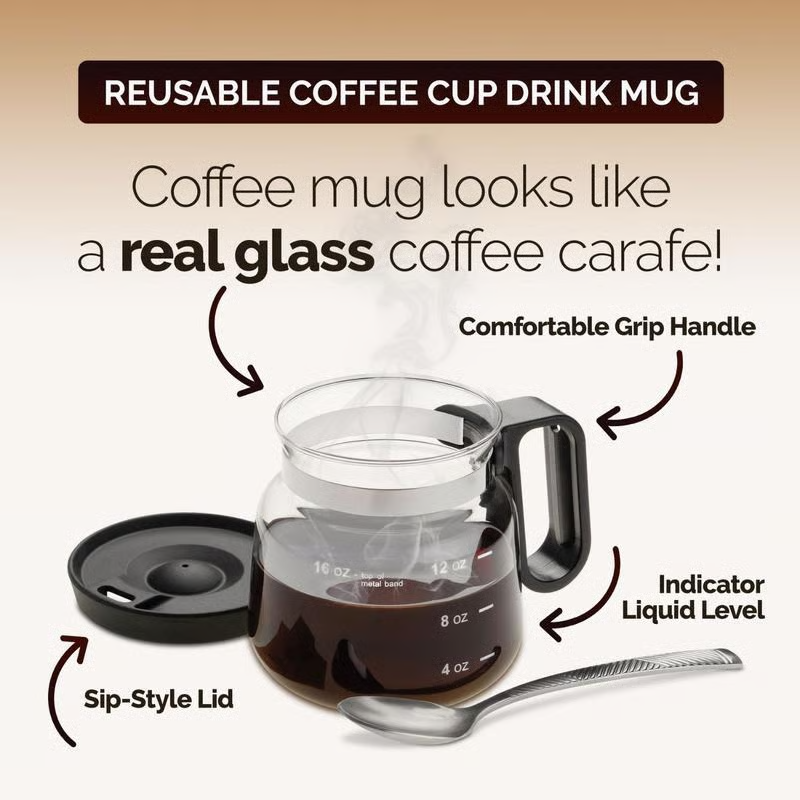 💕💖☕ 16 Oz Glass Coffee Mug – Coffee Pot Style