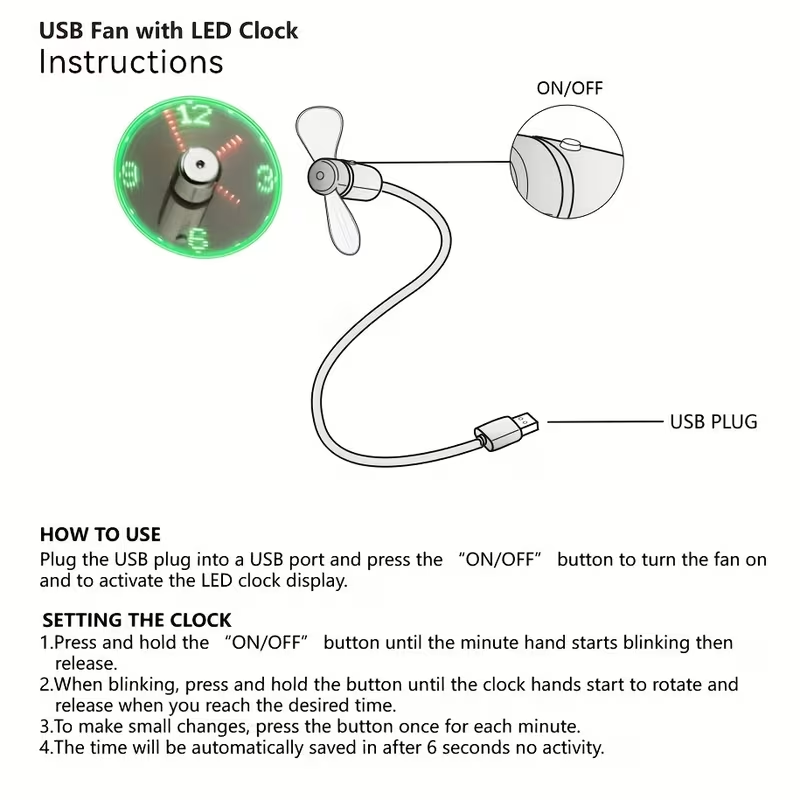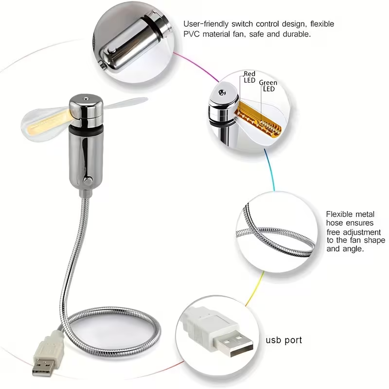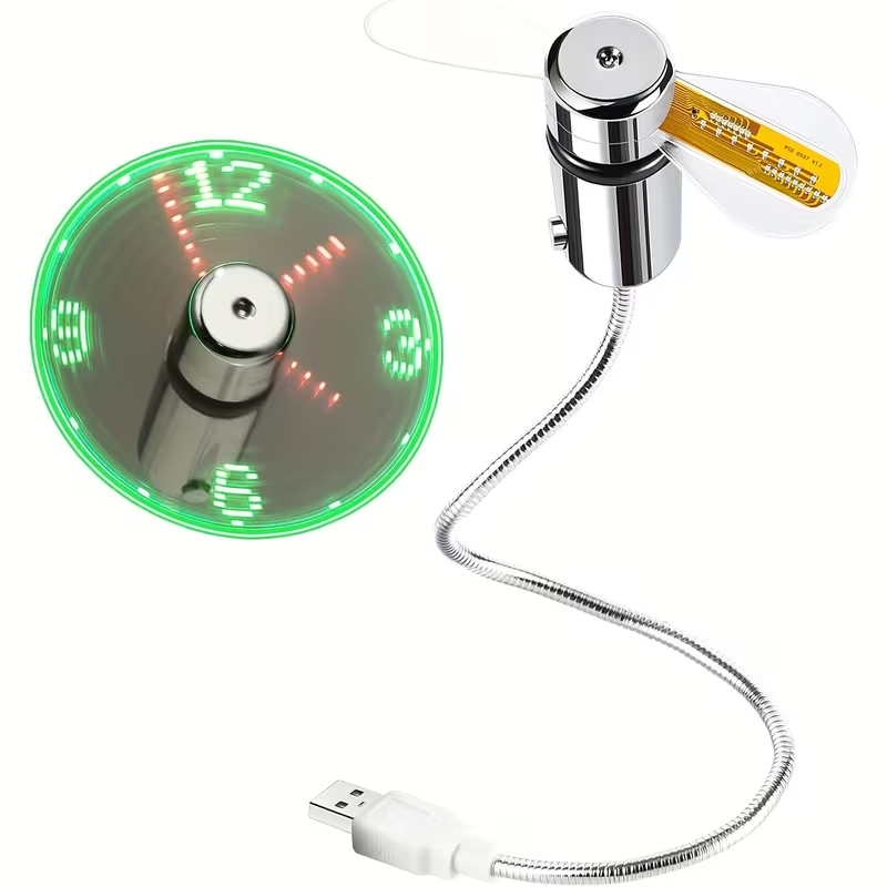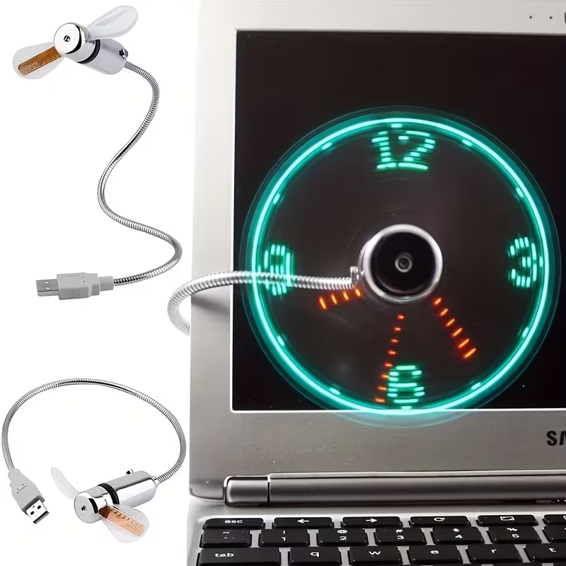 A Flexible USB LED Clock Fan with Real-Time Display, This Portable Mini Fan Is Powered by USB And Is Suitable for Computers And Laptops, Making It a Great Gadget for Men, Women, Boys, And a Cool Creative Christmas Gift