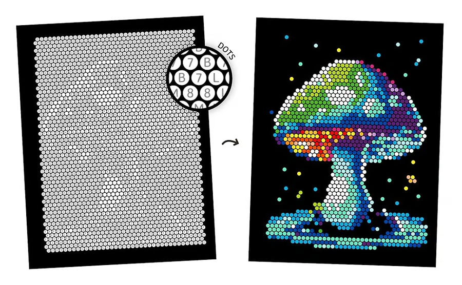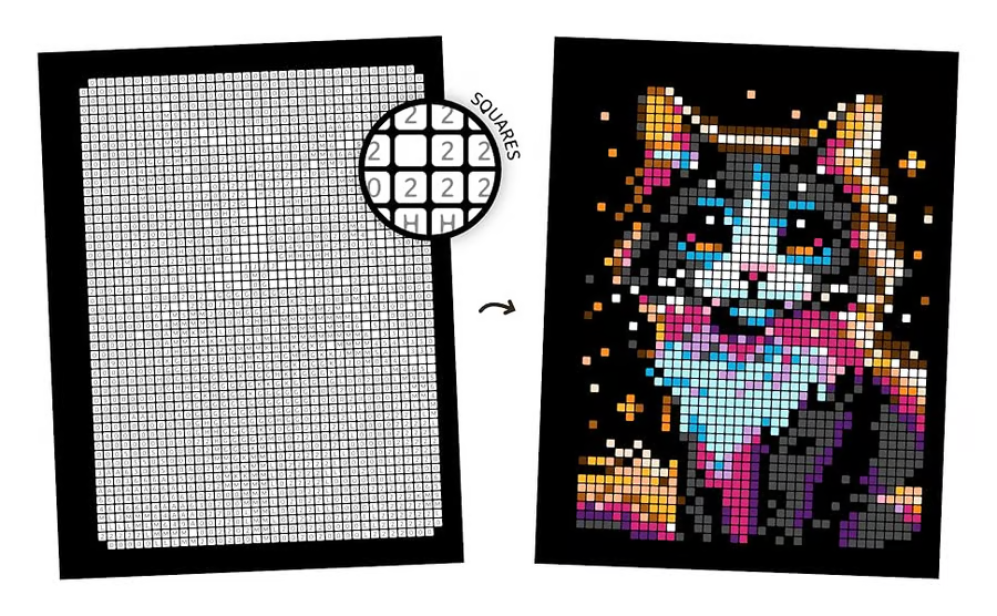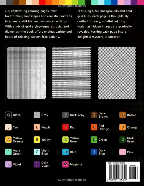 • Black backgrounds: Black backgrounds and bold grid lines make coloring easy and enjoyable.
